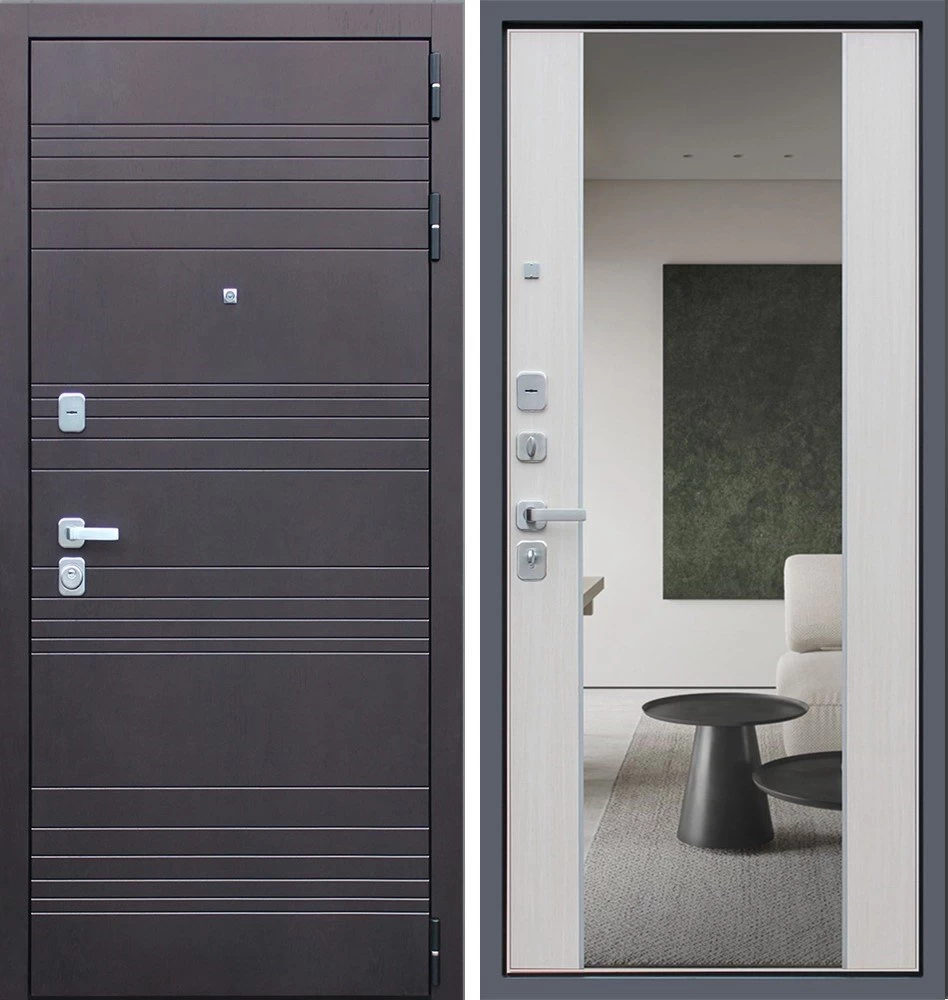 Надежная входная Дверь Дуэт с зеркалом премиум класса по цене 46 721 руб. Большая толщина стали защитит от проникновения в ваш дом, квартиру или коттедж. Используется очень качественная фурнитура: замки, цилиндры, ручки, защелки. Покрытие и отделка двери изготовлено под внимательным контролем производителя. Дверь имеет долгий срок службы и гарантию.